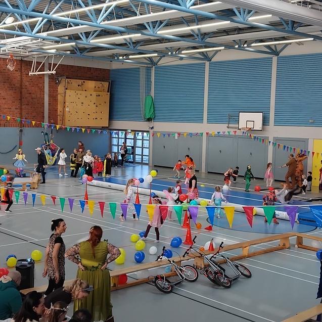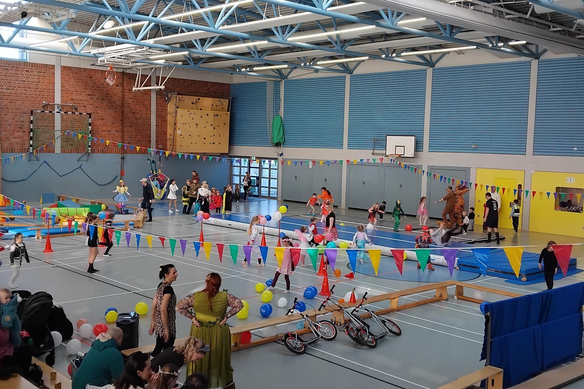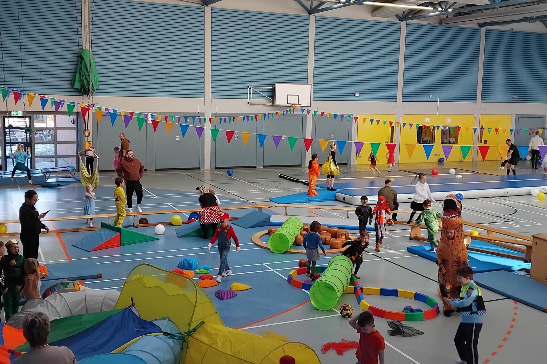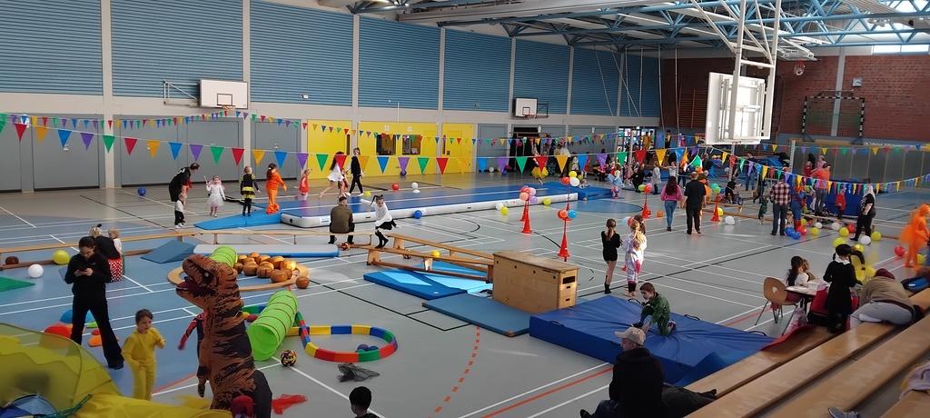In liebevoller Aufbauarbeit hatte unser Orga-Team eine Tobe-Spiel- und Grusel-Landschaft in der Sporthalle der Wallschule vorbereitet. Rund 300 junge und jugendlich gebliebene Gäste tobten, spielten und gruselten sich in der interessant und sportlich-abwechslungsreich gestalteten Halle.