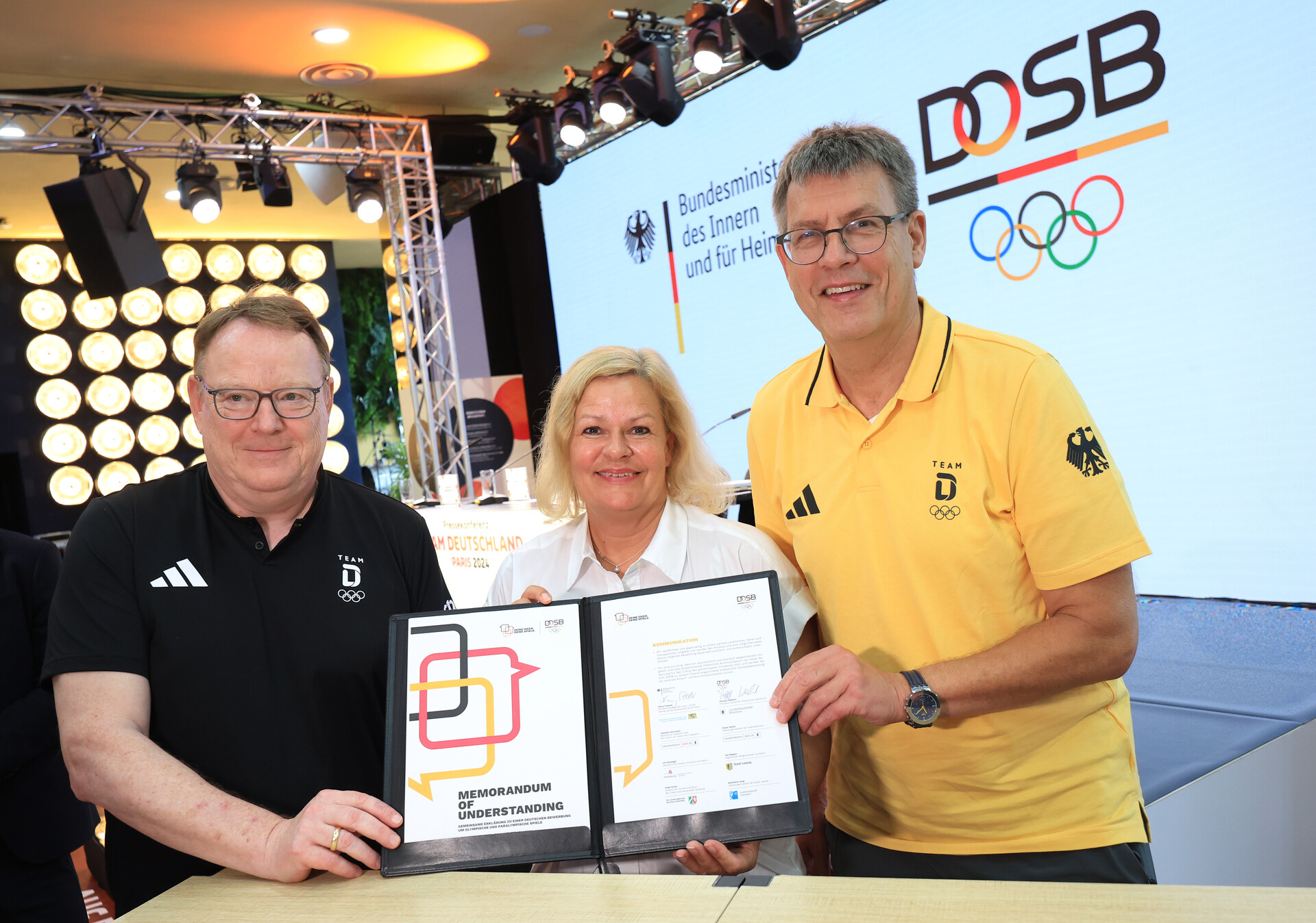 Paris, 2. August 2024 – Bundesinnen- und Sportministerin Nancy Faeser unterzeichnet heute bei den Olympischen Spielen im Deutschen Haus in Paris im Namen der Bundesregierung die Gemeinsame Erklärung (Memorandum of Understanding / MoU) zu einer deutschen Bewerbung um Olympische und Paralympische Spiele. Damit erreicht der Deutsche Olympische Sportbund (DOSB) einen weiteren wichtigen Meilenstein auf dem Weg zu einer gemeinsamen Bewerbung mit den interessierten Städten und Bundesländern.
